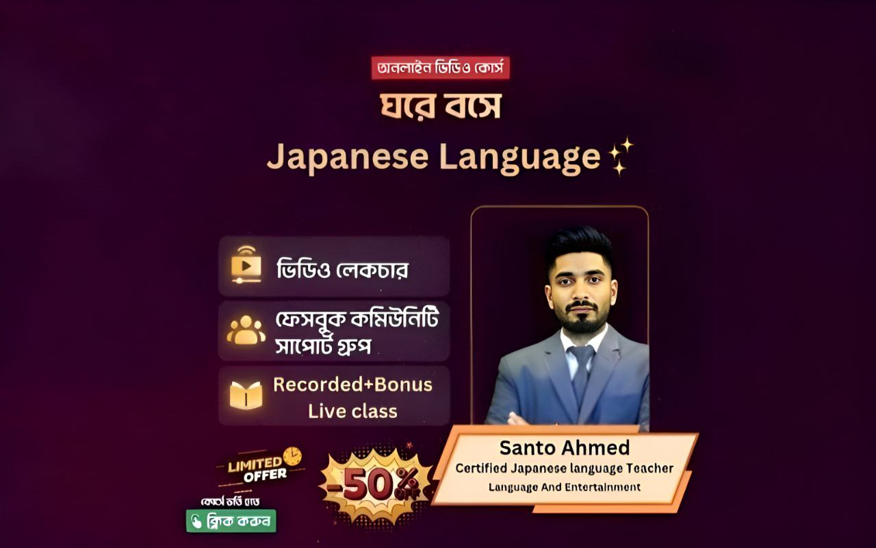 একটি পূর্ণাঙ্গ কোর্স যা আপনাকে জাপানিজ সব প্রধান ক্ষেত্রগুলো সহজে আয়ত্ত করতে সাহায্য করবে – জাপানিজ পড়া, কথা বলা, শোনা এবং লেখা। এই এক কোর্সেই আপনি জাপানিজ সব দক্ষতা ডেভেলপ করতে পারবেন।